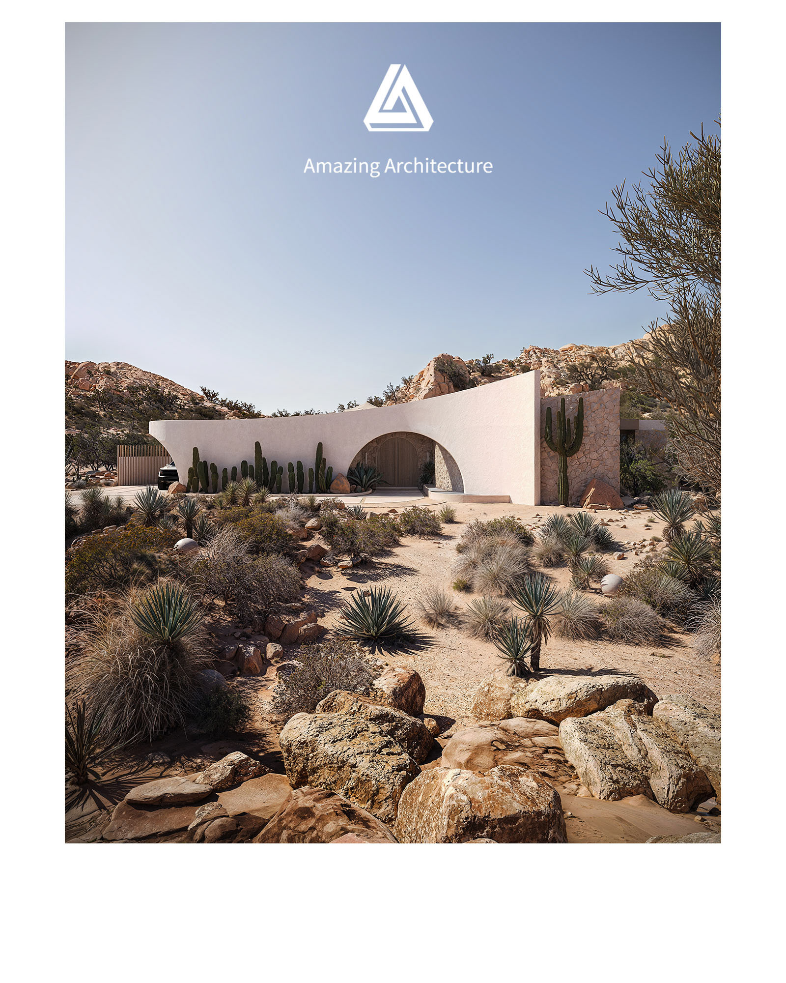 Diachok Architects: This project is an exploration of how to live in a powerful desert landscape without being overwhelmed by it. Joshua Tree is defined by exposure: intense light, open horizons, dry air, and a scale that constantly reminds a person of their physical smallness. Rather than amplifying these qualities, the house is conceived as a spatial filter — a structure that moderates the environment and creates conditions for calm, inhabitable life.